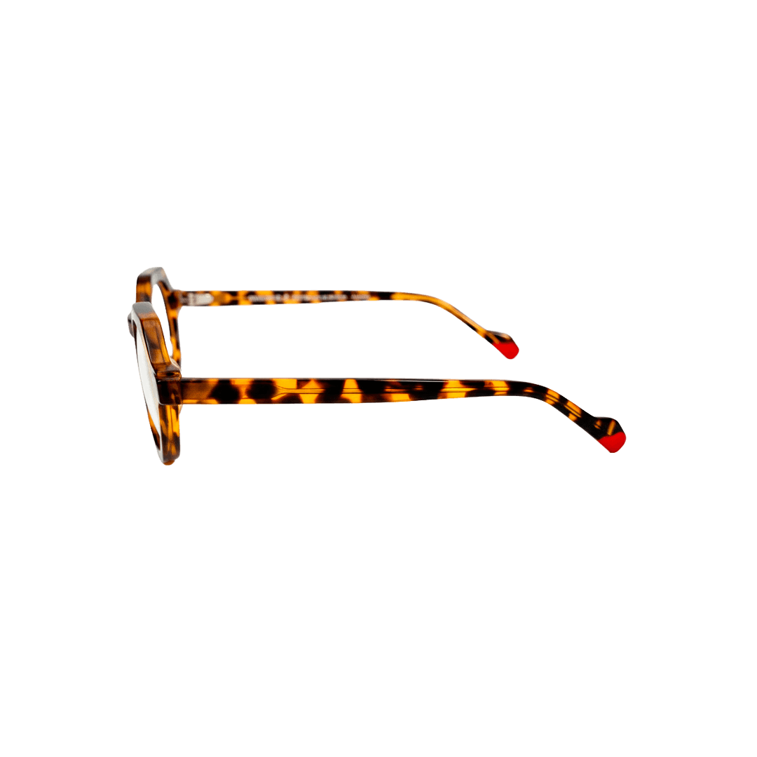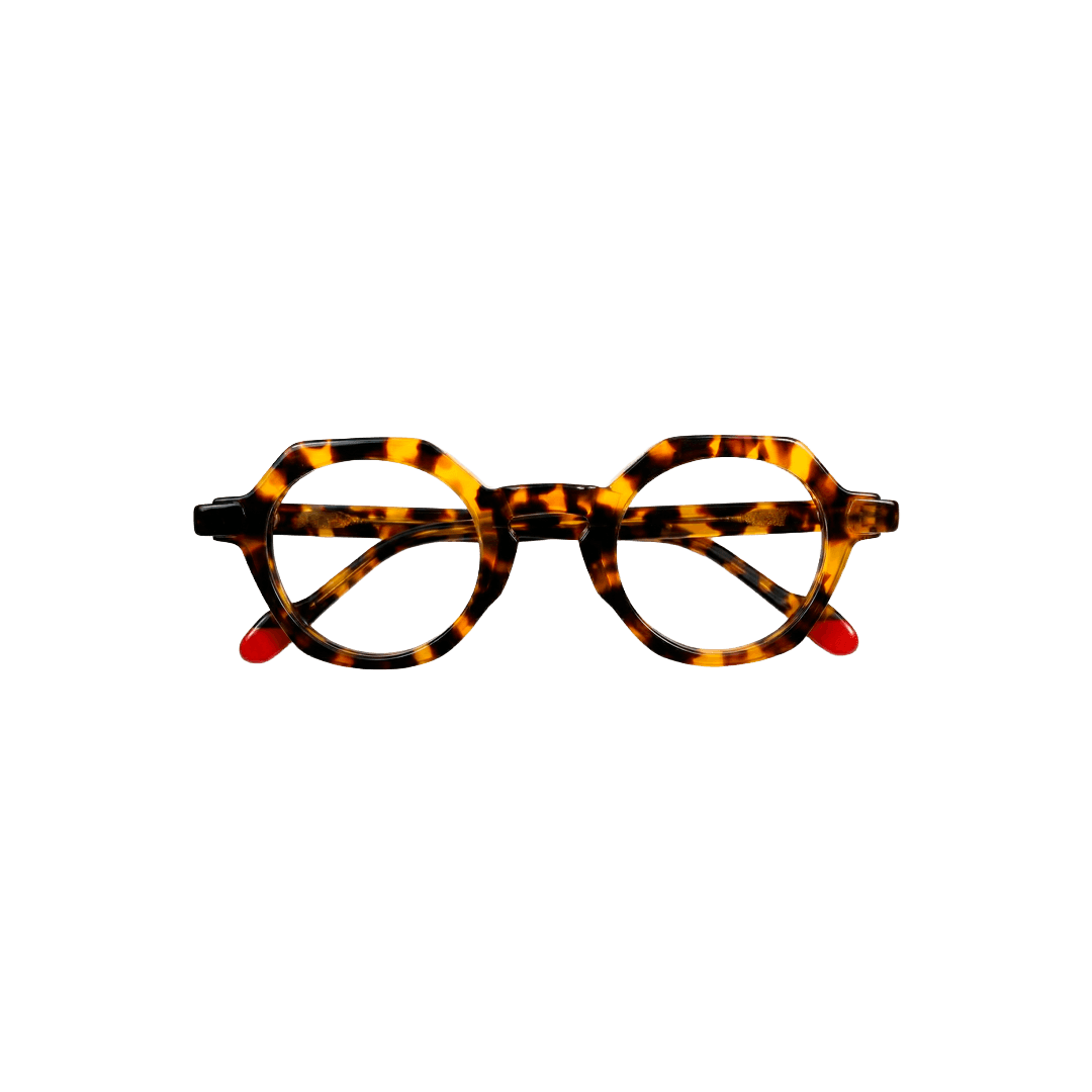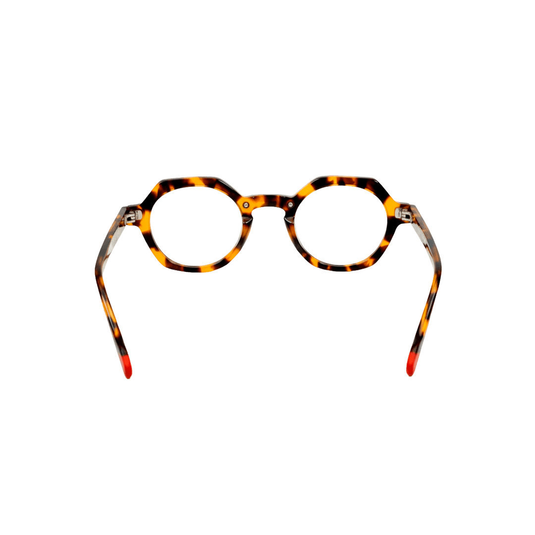 Forma geométrica refinada em acetato tartaruga clássico. Armação compacta octogonal com bordas precisas e hastes finas, discreta, mas cheia de caráter hipster moderno. Perfeita para rostos menores ou quem prefere óculos minimalistas e elegantes. Combina com looks slim fit, smart casual ajustado ou produções clean. Leve, versátil e com um ar intelectual sofisticado.