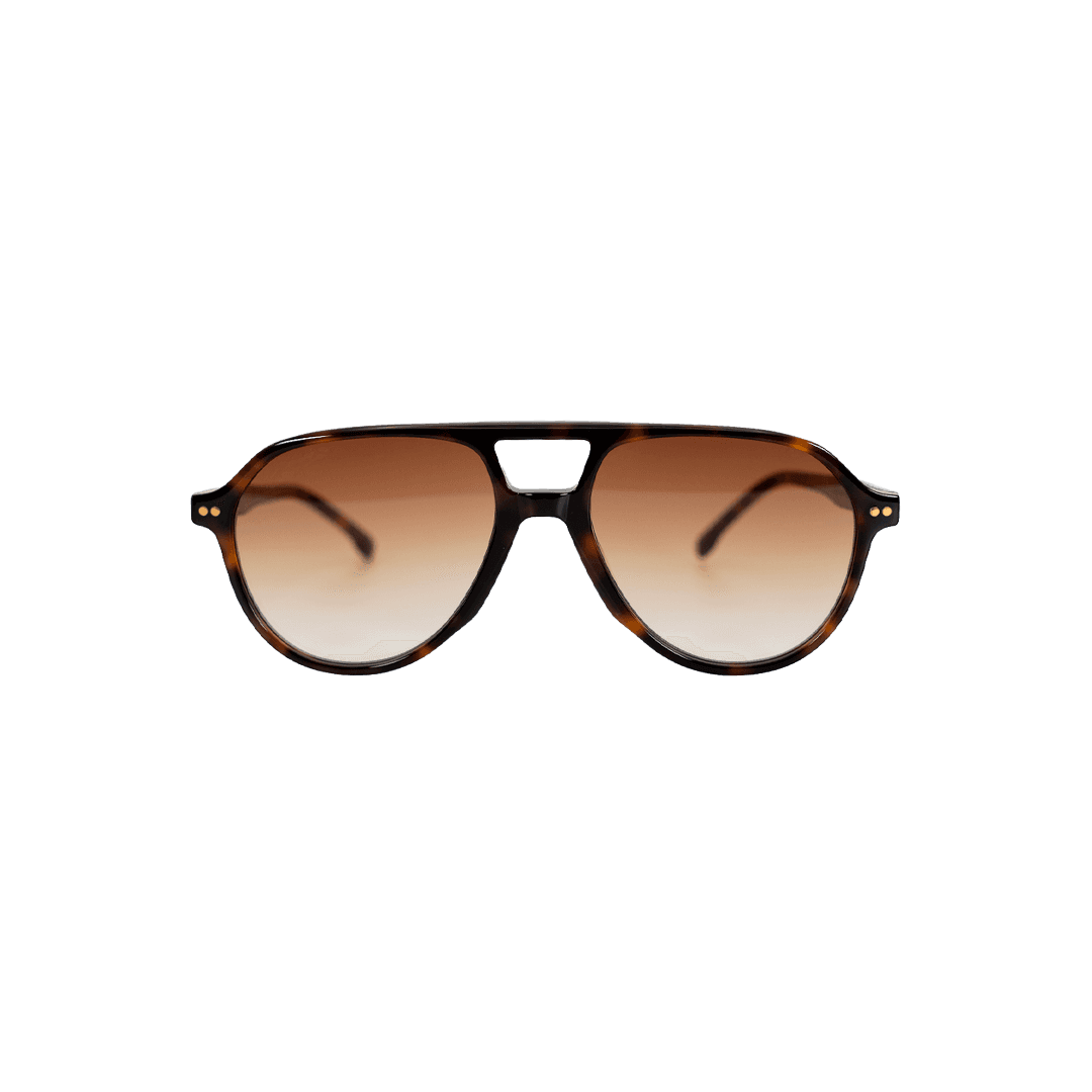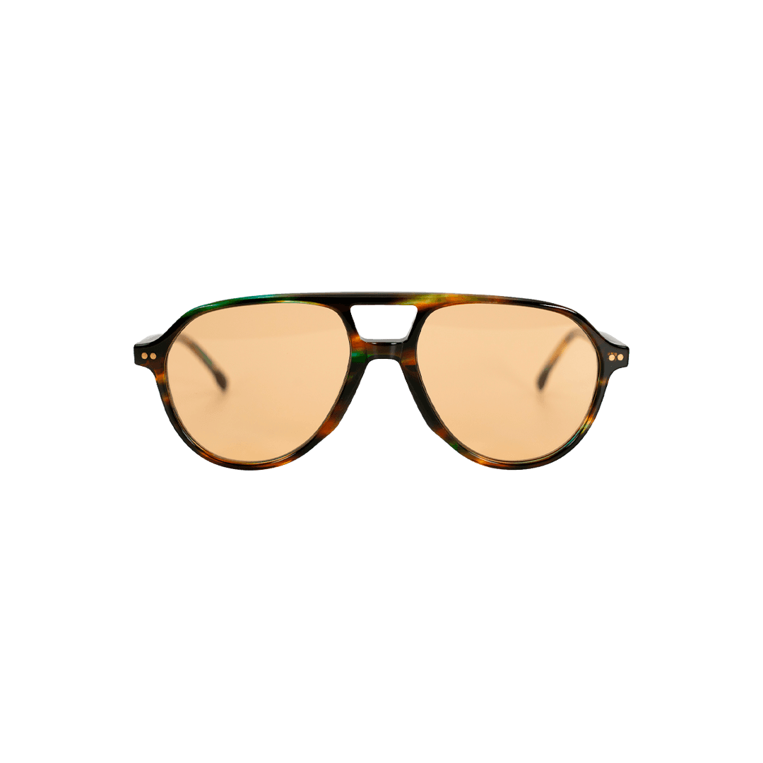Aviador clássico em acetato de espessura média com dupla barra superior integrada e rebites dourados duplos como detalhe de acabamento. Um modelo de presença imediata, que carrega a energia dos anos 70 com leveza contemporânea. Para quem quer um óculos icônico sem abrir mão de sofisticação, funciona melhor em rostos ovais ou alongados e combina com looks casuais, peças oversized e produções com atitude. Confiante, atemporal e feito para ser notado.