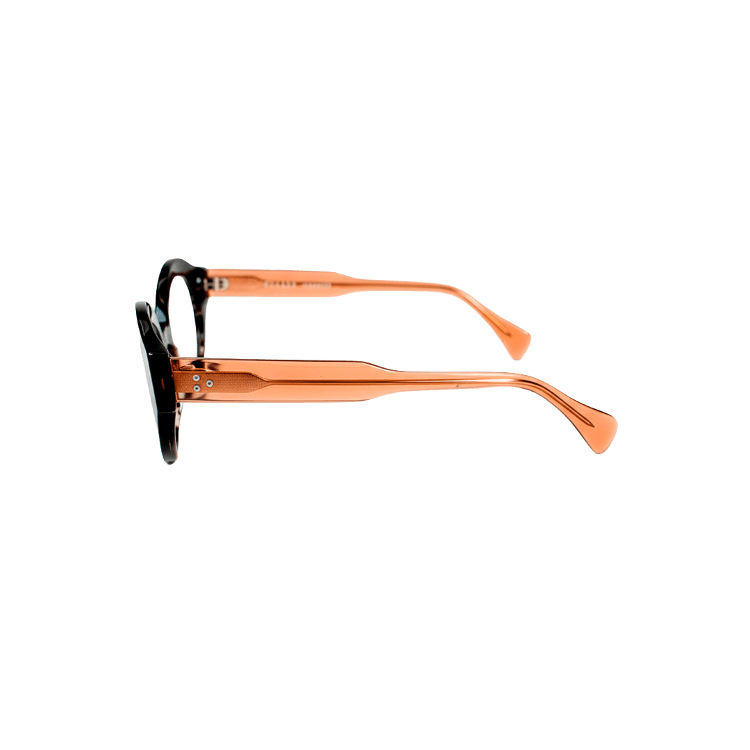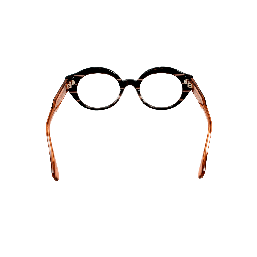Um clássico reinventado com atitude moderna. Armação cat-eye ampla em acetato tartaruga escuro translúcido, com bordas suaves e pontas elevadas que alongam o olhar. As hastes finas em tom rosado sutil adicionam um toque feminino e delicado. Perfeito para quem busca sofisticação retrô com um ar contemporâneo, ideal para looks vintage chic, old money ou noites marcantes. Leve, confortável e statement piece que transforma qualquer produção.