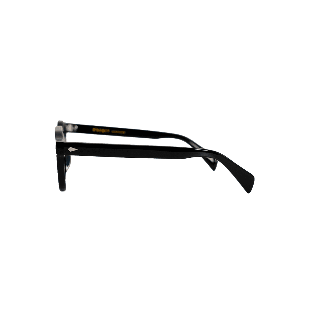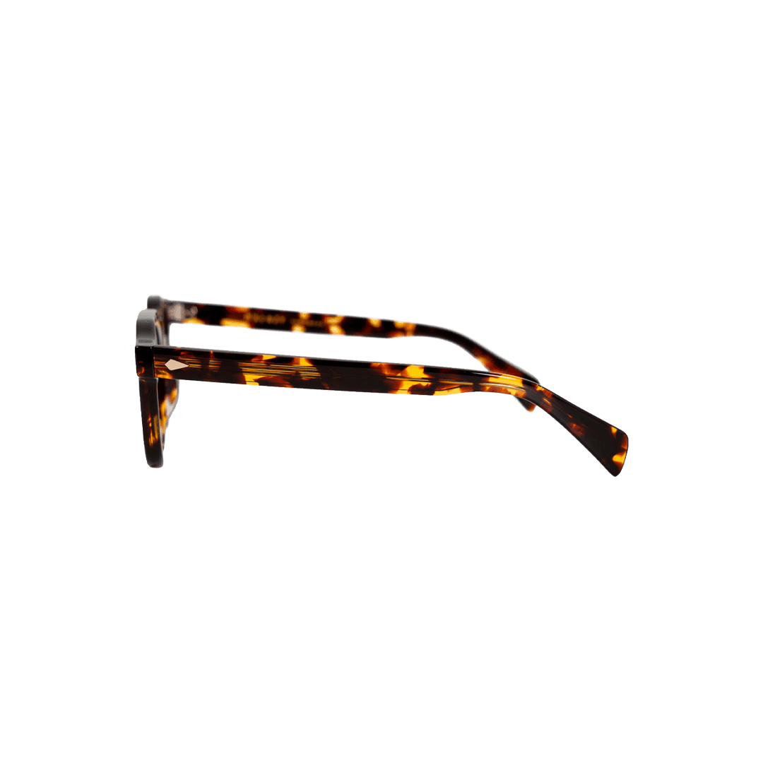 Armação quadrada de cantos arredondados em acetato de corte generoso, com ponte larga e o detalhe losango em metal nas junções das hastes como assinatura do modelo. Inspirado nos grandes frames dos anos 50 e 60, tem proporção e presença sem esforço. Para quem aprecia design com referência e não precisa de tendência para se posicionar. Combina com alfaiataria, linho e jeans escuro. Consistente, elegante e com caráter próprio.