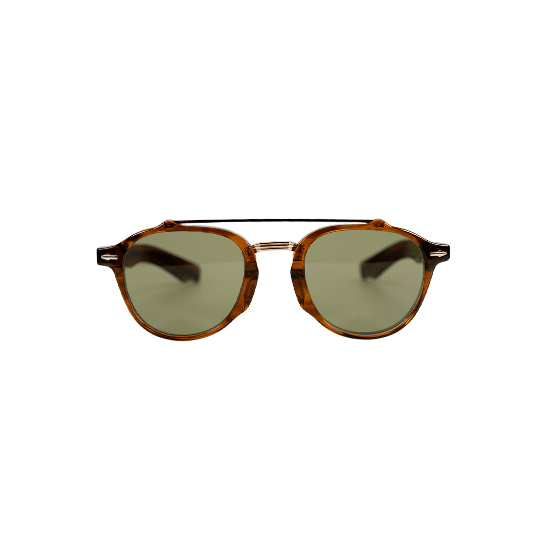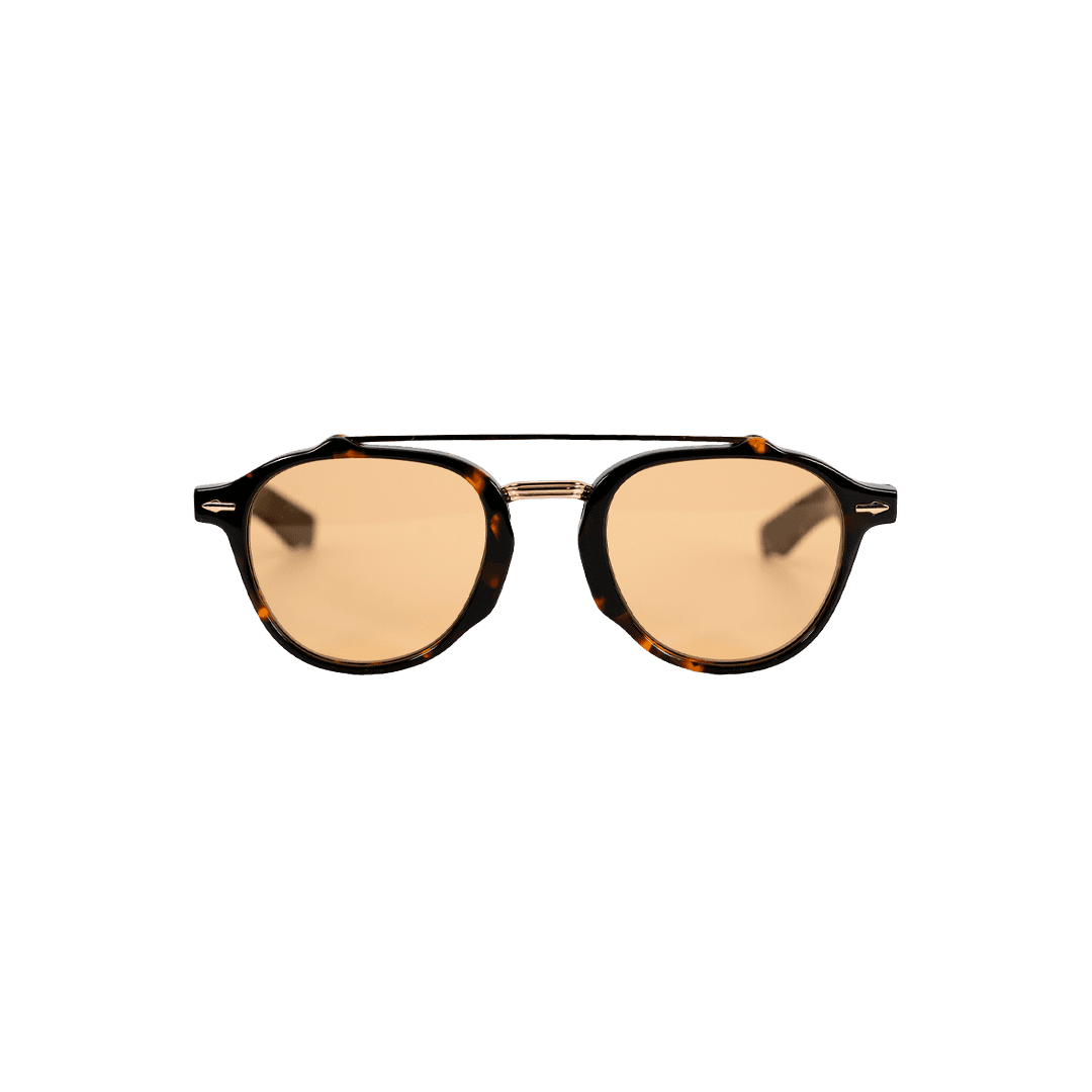 Aviador panto redondo em acetato de espessura média com dupla barra metálica fina e conectores em forma de seta, o detalhe que eleva tudo. Sofisticado e com referência clara nos anos 60 e 70, sem perder a contemporaneidade. Para quem busca um óculos com identidade própria e acabamento cuidado. Combina com looks smart casual, peças alfaiatadas relaxadas e produções com curadoria. Disponível em cinco cores com lentes coloridas que amplificam cada versão. Refinado, autoral e com presença de sobra.