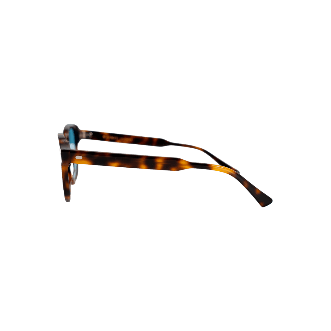 Forma quadrada-arredondada em acetato de espessura média, com cantos levemente angulados e rebites ovais brancos que finalizam o modelo com elegância discreta. Versátil e com caráter, funciona bem em rostos ovais ou redondos e combina com looks do dia a dia sem abrir mão de personalidade. Disponível em verde-azulado rajado com azul, tartaruga com azul e vermelho texturizado com rosa. Clássico, acessível e feito para durar.